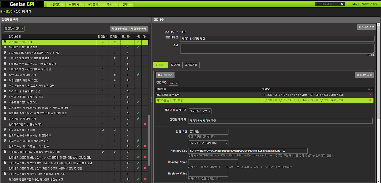 ○ 레지스트리를 통해 매직라인 설치 여부 점검 정책을 생성합니다.