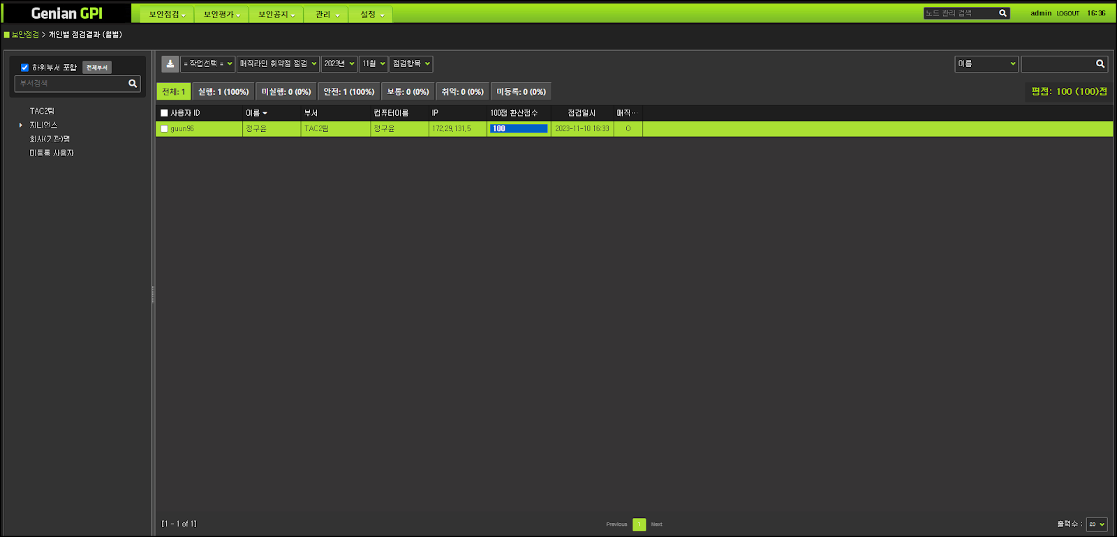 ○ 직원과 관리자 모두 보안 수준을 즉시 인지할 수 있으며, 개선이 필요한 사항에 대해서 조치를 강제화 할 수도 있습니다.