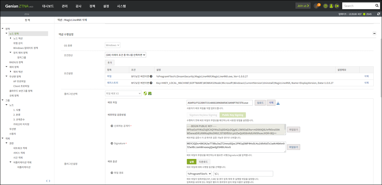 ○ 레지스트리를 통해 매직라인 1.0.0.27 이상 버전일 경우 안전한 정책을 생성합니다.