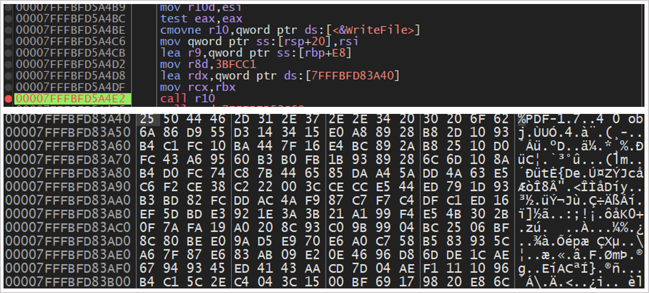 ○ 'C:\Users\[사용자명]\AppData\Roaming\temp\{난수}.tmp' 경로에 임시 파일을 생성한 뒤, 해당 파일에는 악성 코드의 '.data' 섹션에 존재하는 데이터를 그대로 저장합니다.