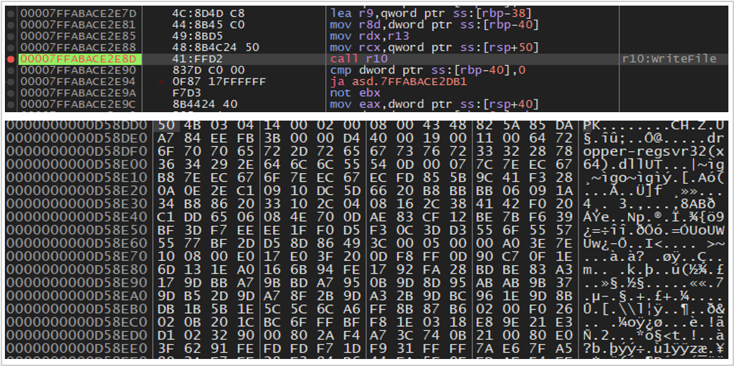 ○ 디코딩이 모두 완료되면 악성 DLL 파일을 'C:\ProgramData\vmZMXSx.eNwm' 파일명으로 저장합니다.