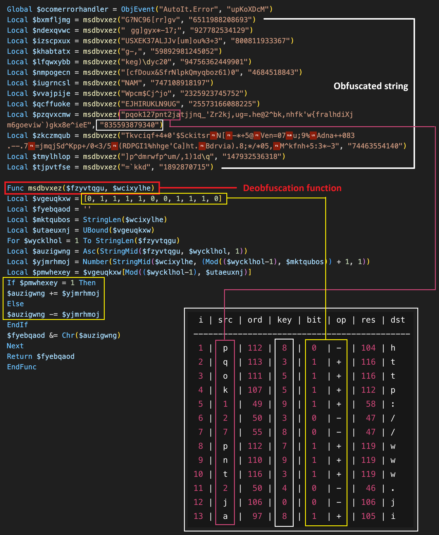 - Attempts to evade anti-virus defenses through batch files and AutoIt scripts