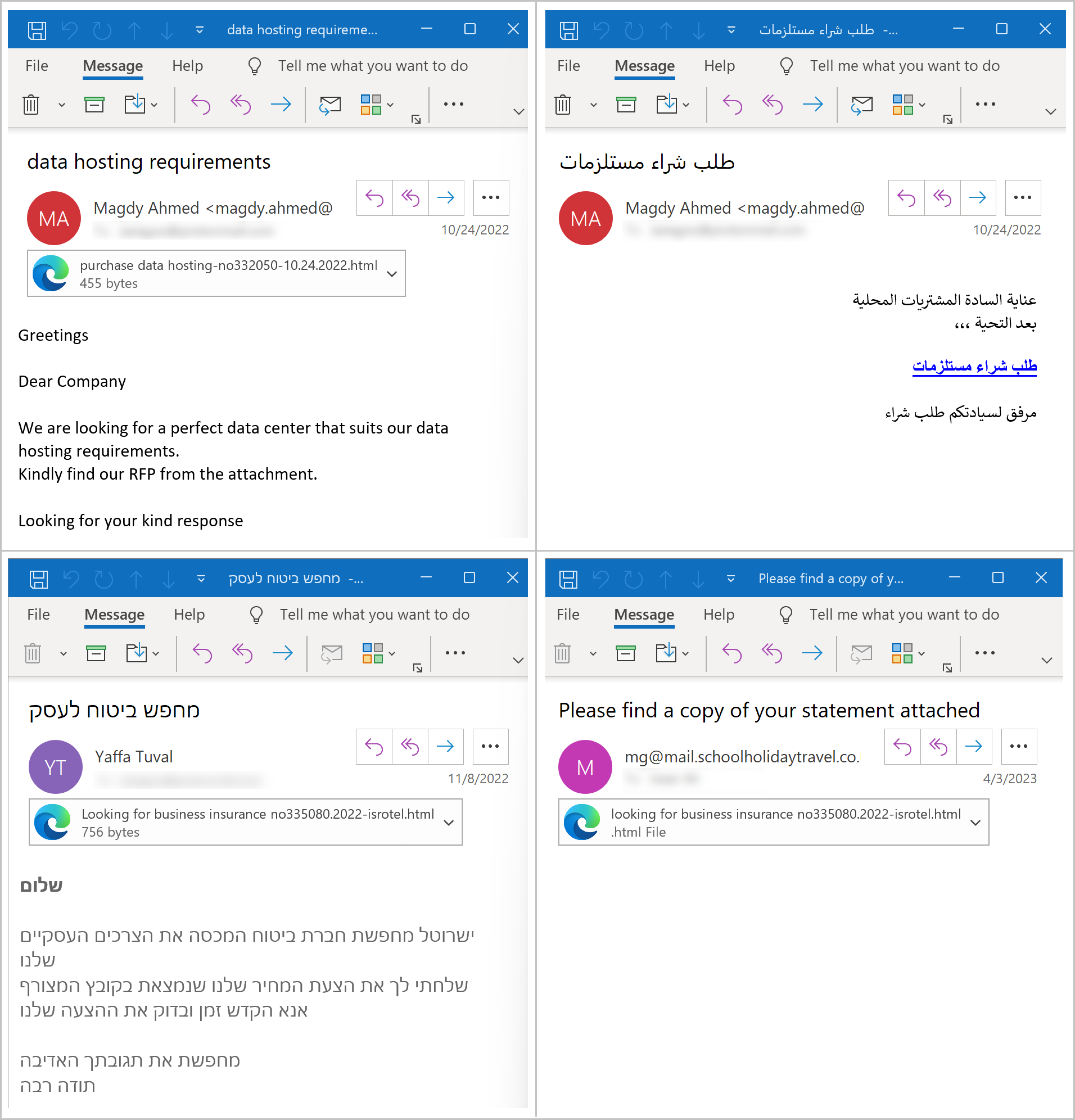 Notably, the malicious HTML attachment used in this attack was the same file used in the November 2022 attacks against Israel’s insurance industry.