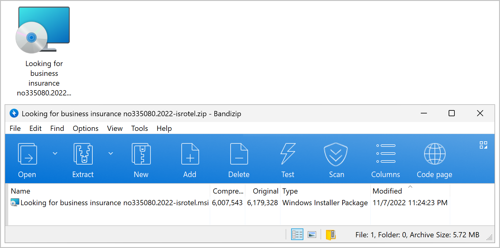 The file "Looking for business insurance no335080.2022-isrotel.msi" contained inside was a Syncro MSI installer.