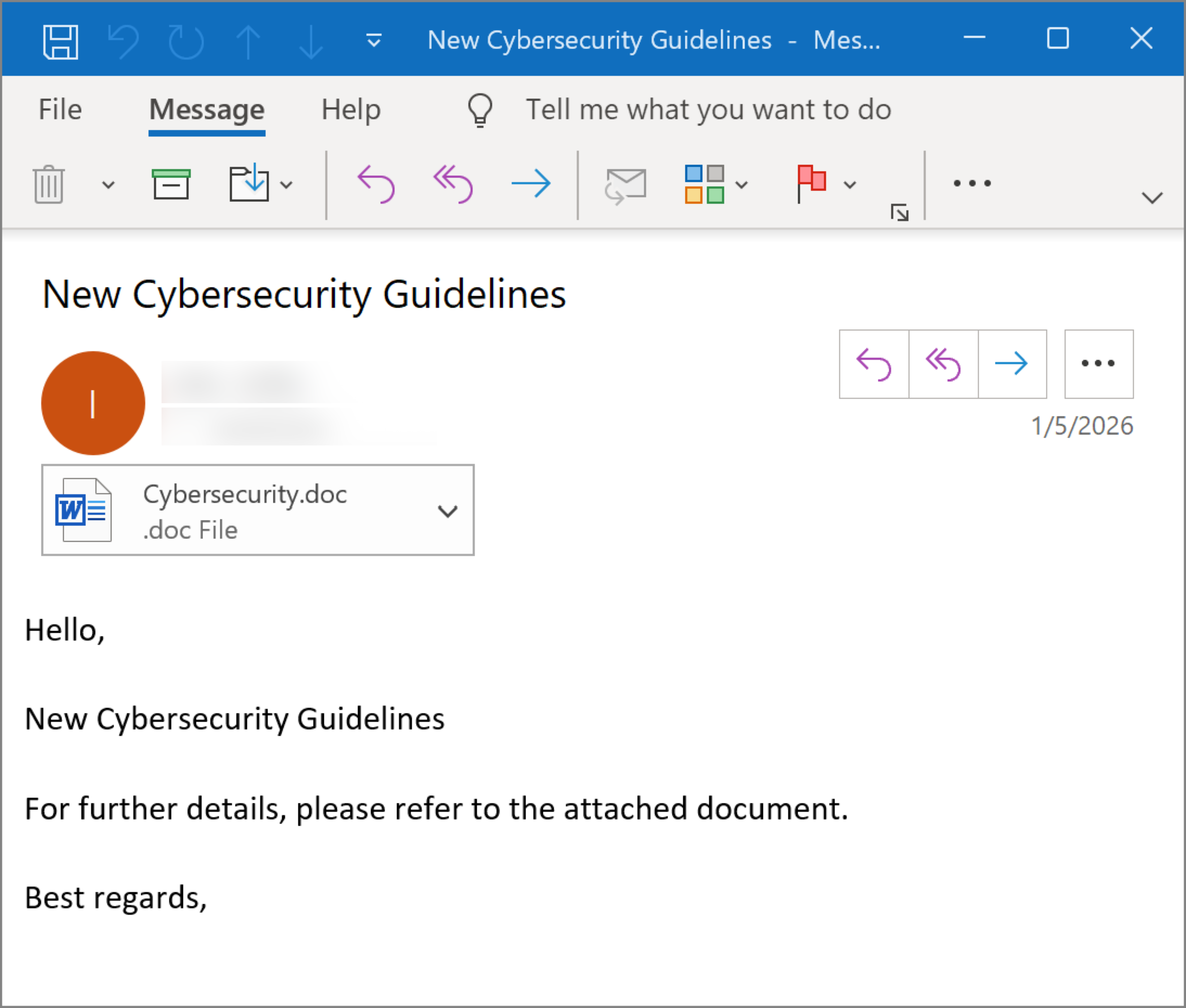 The threat actor simultaneously addressed multiple individual accounts using the recipient university’s official email domain and delivered a malicious file. This indicated a targeted campaign aimed specifically at members of a particular educational institution, rather than indiscriminate distribution to an undefined audience.